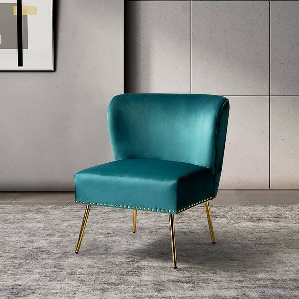Basilio Blue Accent Wingback Chair with Nailhead Trim