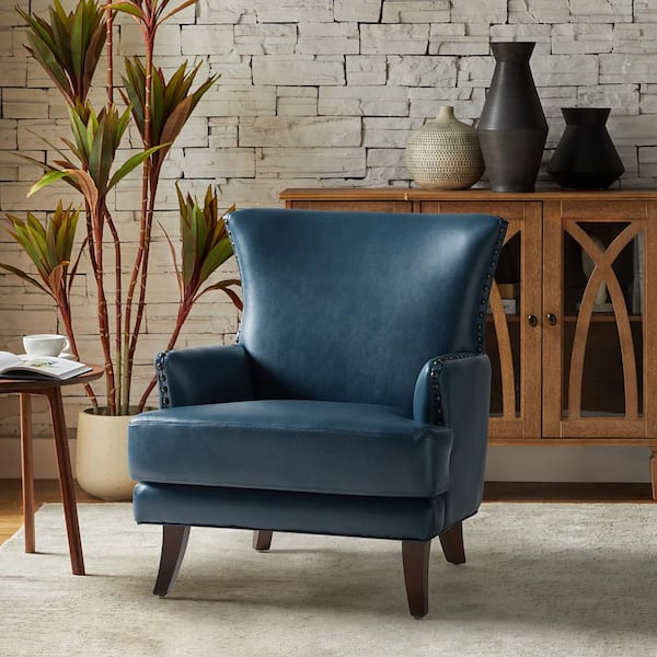 Bonnot Transitional Turquoise Faux Leather Wingback Armchair with Nailhead Trim and T-Cushion