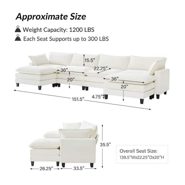 Braya 151.5 in. Pillow Arm 6 Seats Sectional Polyester Sofa in Ivy