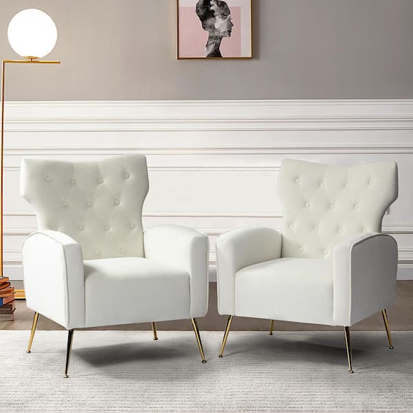 Brion Modern Ivory Velvet Button Tufted Comfy Wingback Armchair with Metal Legs (Set of 2)