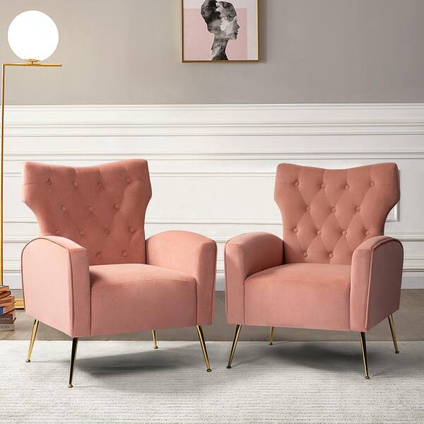 Brion Modern Pink Velvet Button Tufted Comfy Wingback Armchair with Metal Legs (Set of 2)