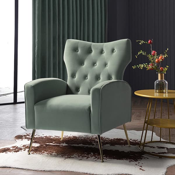 Brion Modern Sage Velvet Button Tufted Comfy Wingback Armchair with Metal Legs