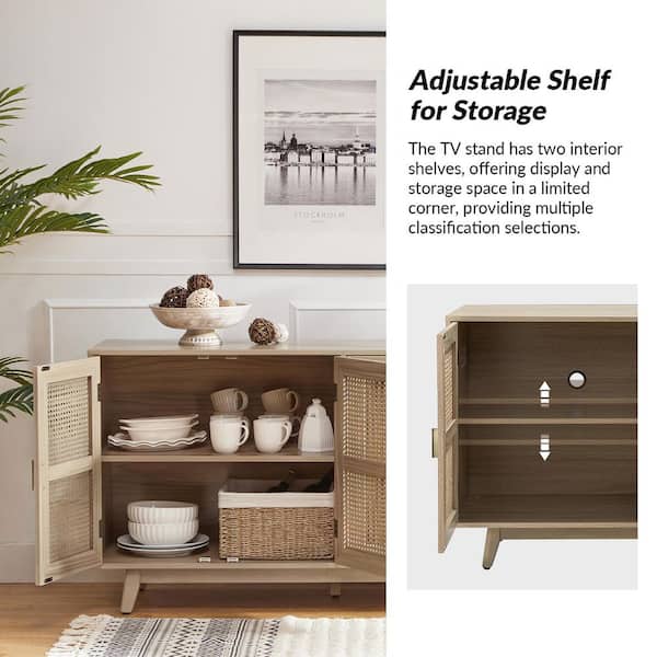 Buthrotos 56.8 in. W Acorn TV Stand for TVs up to 65 in. with Storage Room and 4-Rattan Doors