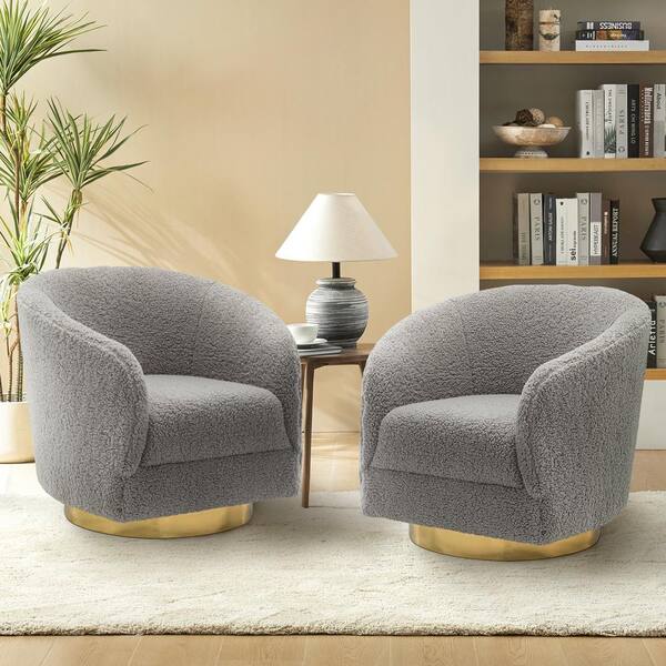 Cadeddu Grey Streamlined Swivel Barrel Chair with Metal Base (Set of 2)