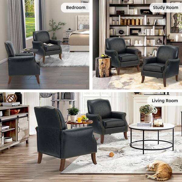 Calestin Transitional 31 in. Navy Faux Leather Arm Chair with Solid Wooden Legs (Set of 2)