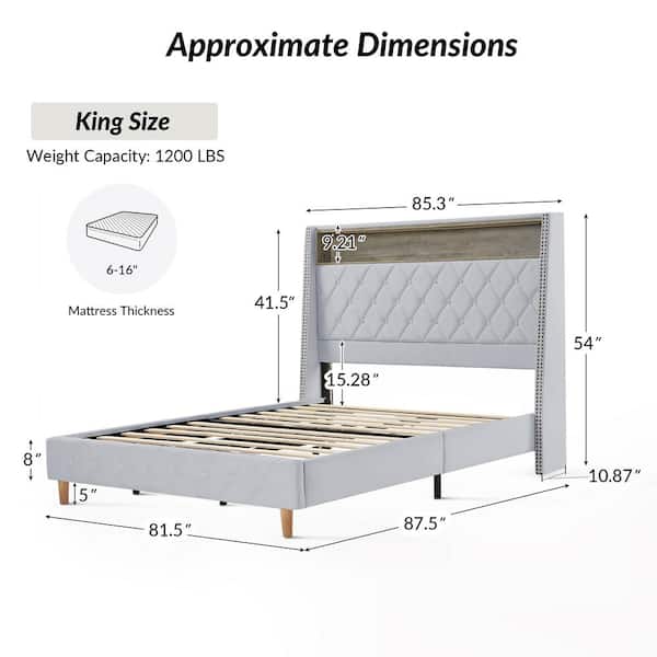 Candido Light Gray 81.5 in. Upholstered Wood Frame King Panel Bed Charging Stations and Integrate Motion-Sensor Lights