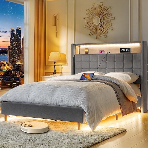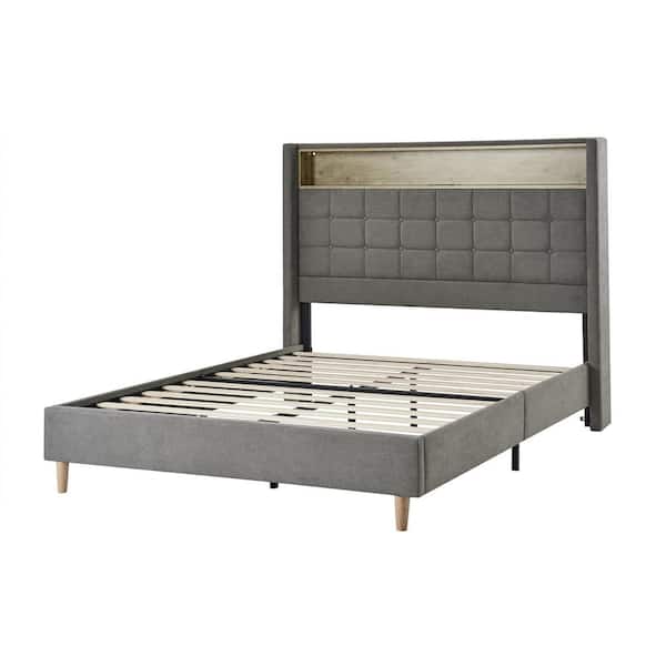 Candido Light Grey Modern 62 in. Queen- Bed with Power Outlets