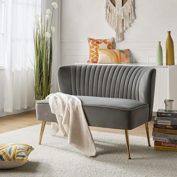 Carmita Grey 47 in. Golden Base Velvet Tufted 2-Seats Loveseats Sofa