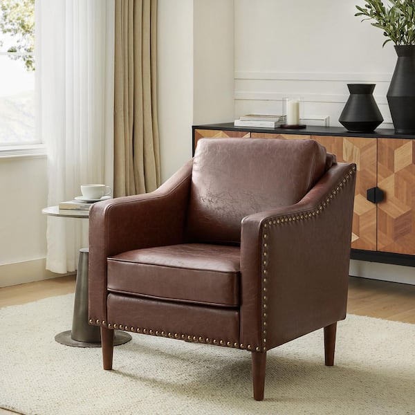 Celio Vegan Leather Brown Armchair with Solid wood Legs