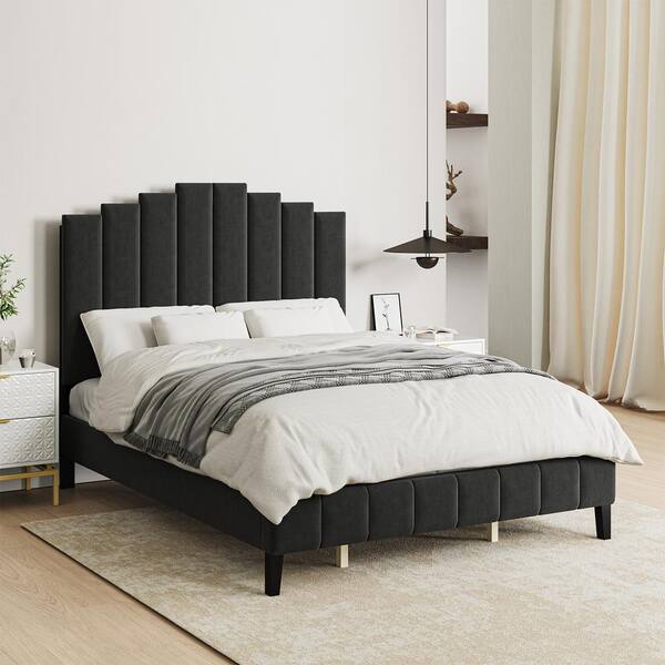 Chaonian 62 in. W Black Tufted Upholstered Platform Bed with Center Legs