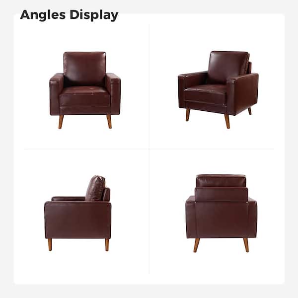 Christine Mid-Century Modern Burgundy Genuine Leather Armchair with Wood Flared Legs (Set of 2)