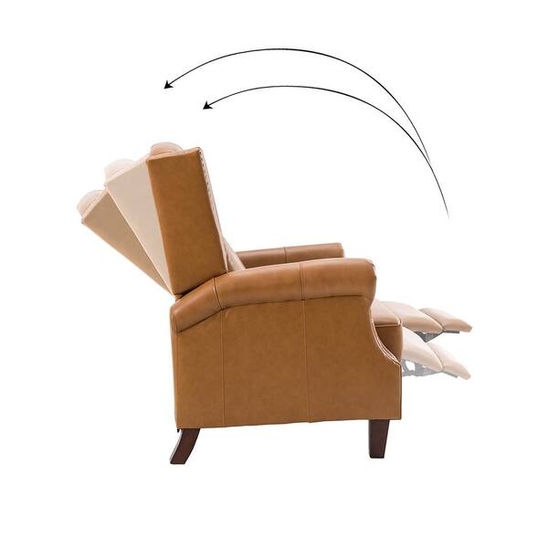 Cilla Genuine Leather Camel Manual Recliner with Wooden Legs