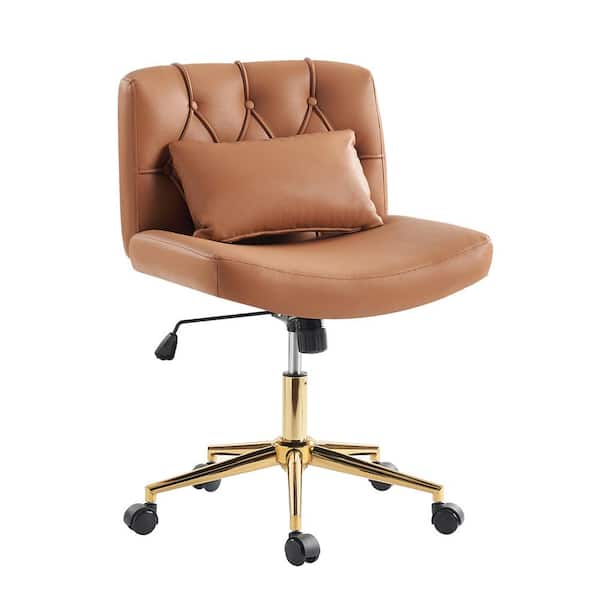 Clarence Modern Polyester Swivel Office Chair in Camel with Casters