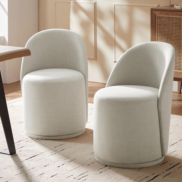 Clester Beige Polyester Swivel Dining Chair Set of 2
