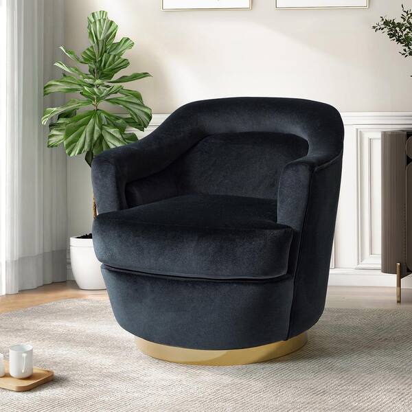 Cosmin 31 in. Modern Black Polyester Swivel Arm Chair with Metal Base