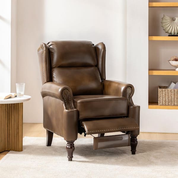 Cristoforo Toffee 34 in. W Genuine Leather Manual Recliner