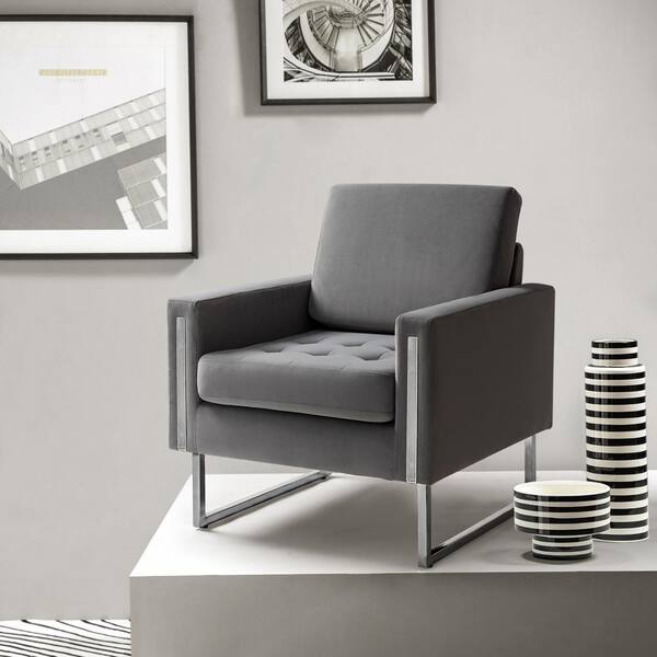 Dardanus Modern Grey Velvet Club Chair with Embedded Metal Armrests