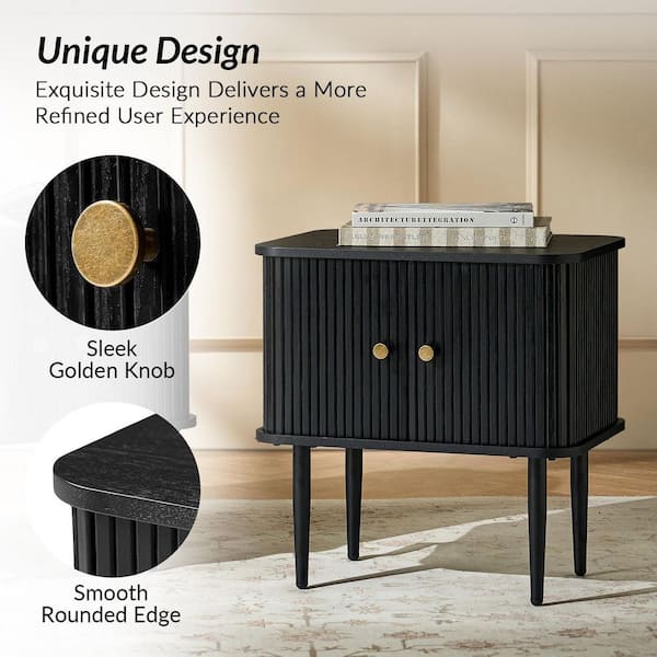 Dawn Black 21.6 in. W Slattd Tambour Door Nightstand with Metal Legs (Set of 2)