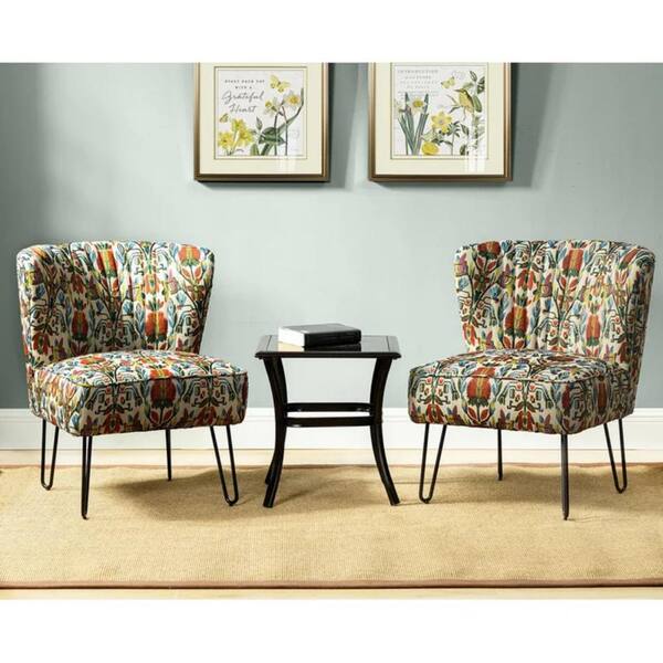 Dionisio U-shaped legs Upholstery armless chair with tufted print Set of 2