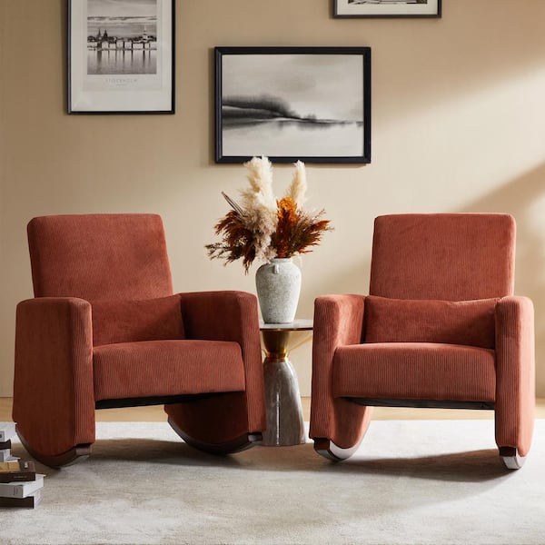 Don Rust Solid Wood Rocking Chair with Polyester Upholstery, (Set of 2)
