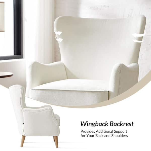 Doris White 28.5 in. Modern Arm Chair with Wingback Backrest and Solid Wood Legs