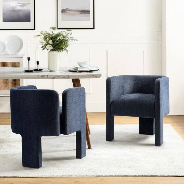 Edgar Navy Modern Segmented Designed Dining Chair with 3-Legged Design and Sleek Silhouette (Set of 2)
