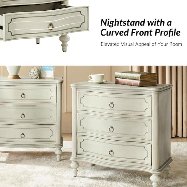 Egmund Set of 2 Traditional 3-Drawer Nightstand with Solid Wood Legs and Built-In Outlets-White