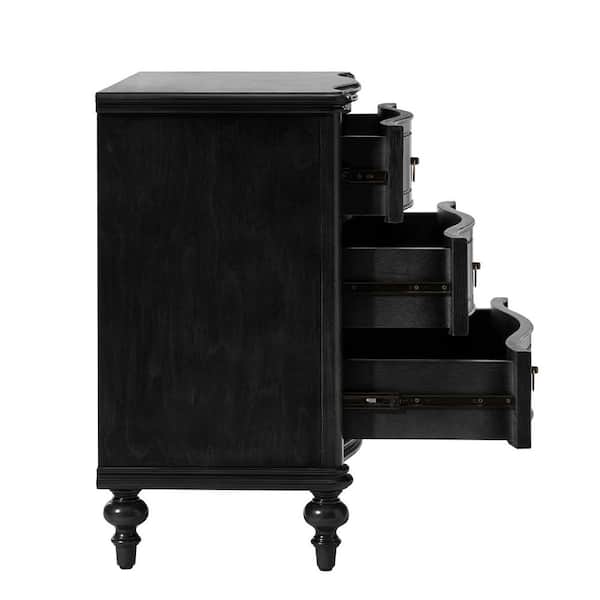 Egmund Traditional 3-Drawer Nightstand with Solid Wood Legs and Built-In Outlets-Black