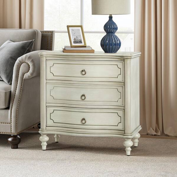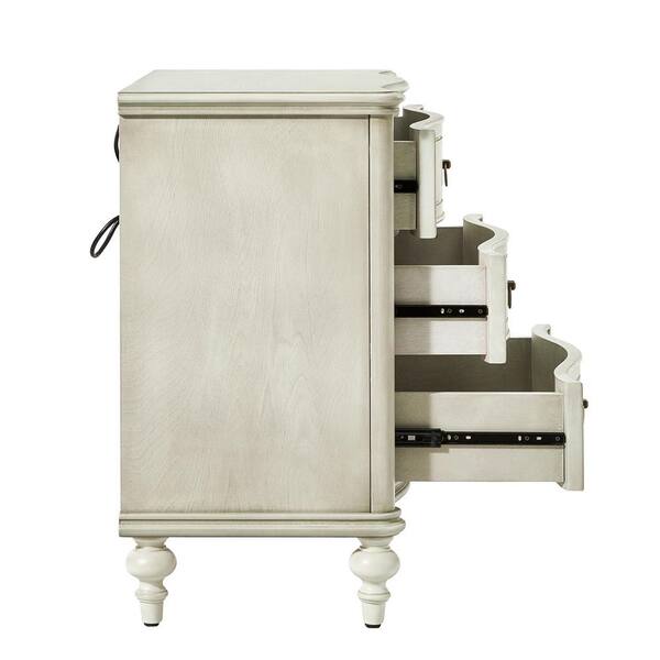 Egmund Traditional 3-Drawer Nightstand with Solid Wood Legs and Built-In Outlets-White
