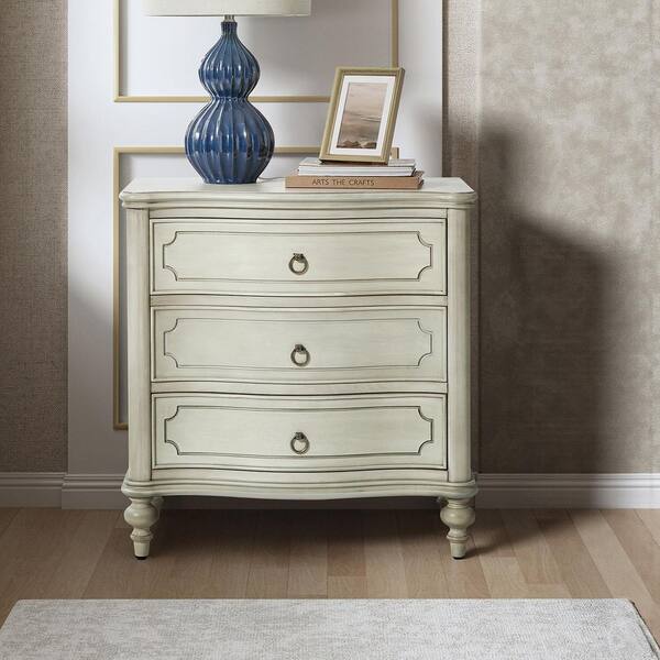 Egmund Traditional 3-Drawer Nightstand with Solid Wood Legs and Built-In Outlets-White