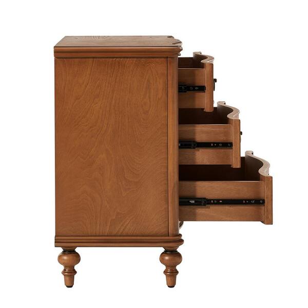 Egmund Traditional 3-Drawer Nightstand with Solid Wood Legs and Built-in Outlets-Walnut