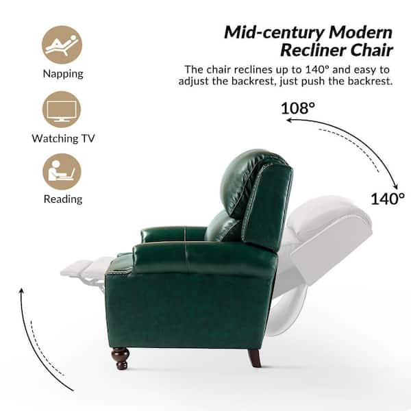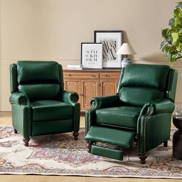 Elisabete Modern Retro Greem Nail Head Trim Genuine Leather Cigar Recliner with Tapered Birch Wood Legs (Set of 2)