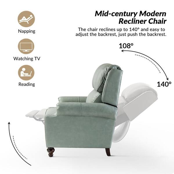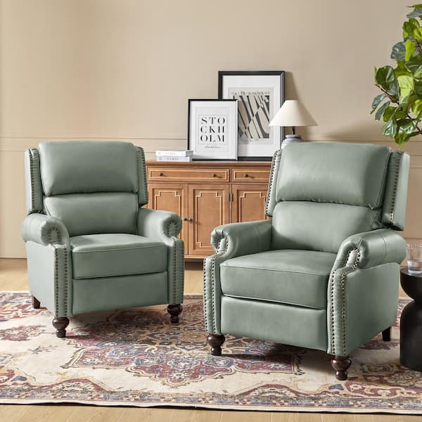 Elisabete Modern Retro Sage Nail Head Trim Genuine Leather Cigar Recliner with Tapered Birch Wood Legs (Set of 2)