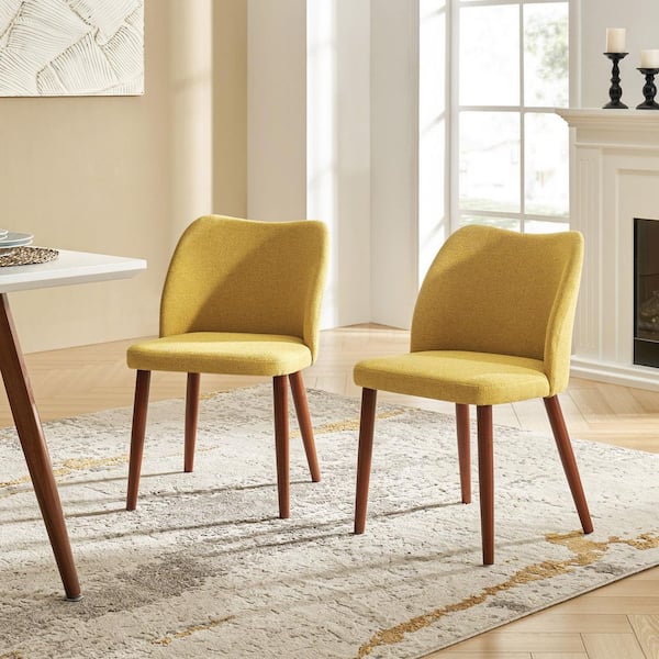 Eliseo Mustard Modern Upholstered Dining Chair with Solid Wood Legs Set of 2