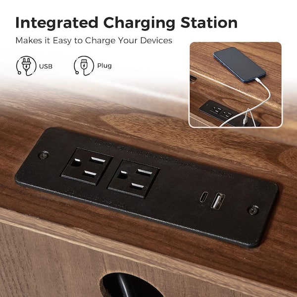Elpenor Cherry 28 in. W Solid Paulownia Wood 4-Drawer Nightstand with Charging Station