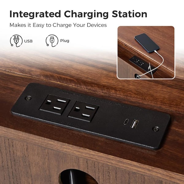 Elpenor Walnut 28 in. W Solid Paulownia Wood 4-Drawer Nightstand with Charging Station