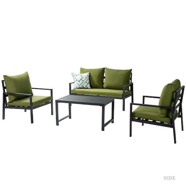 Enfants 4-Pieces Aluminum Patio Fire Pit Outdoor Sofa Set with Green Cushions