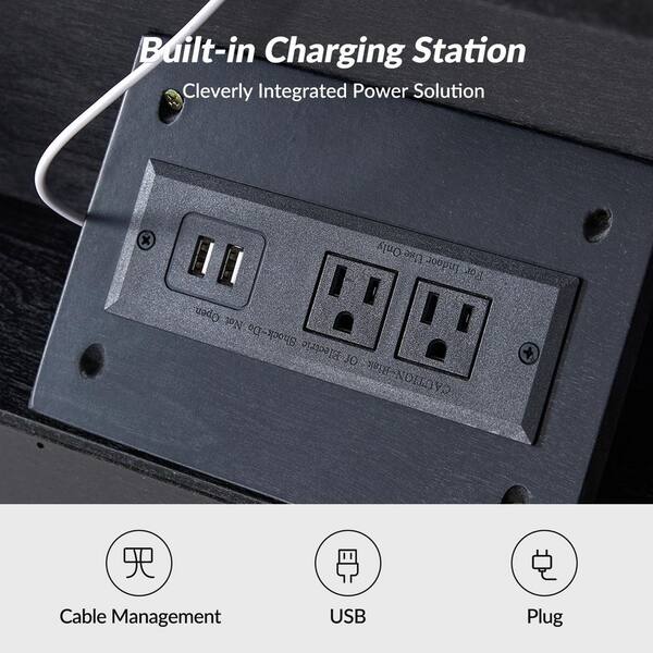 Enzo Black 2 Drawer Nightstand with USB and LED Light