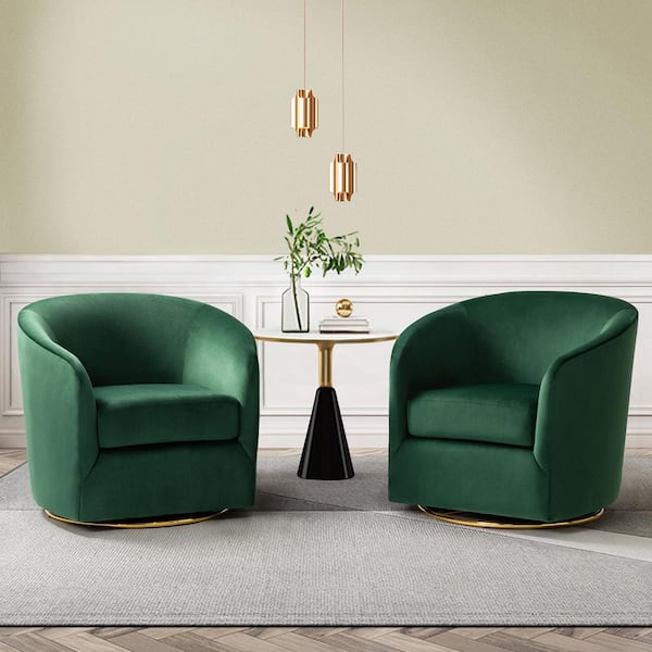 Estefan Green Polyester Arm Chair with Swivel (Set of 2)