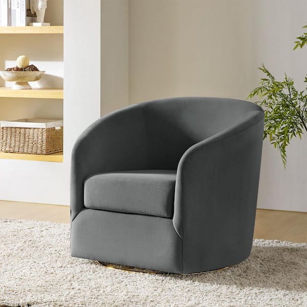 Estefan Grey Comfy Velvet Swivel Barrel Chair with Metal Base