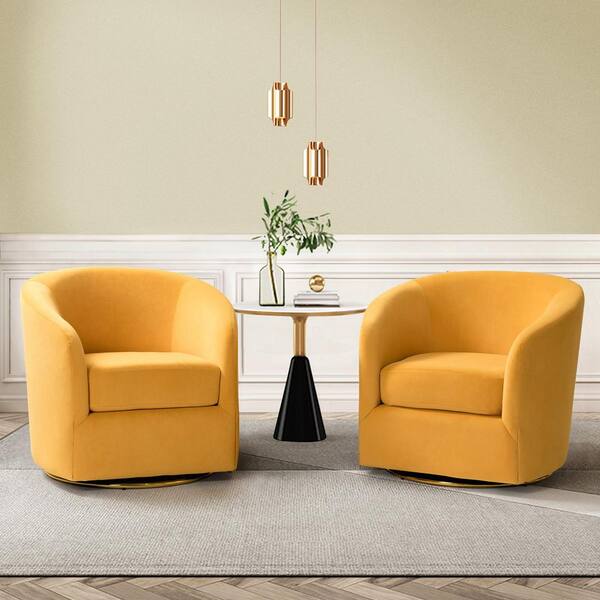 Estefan Mustard Polyester Arm Chair with Swivel (Set of 2)