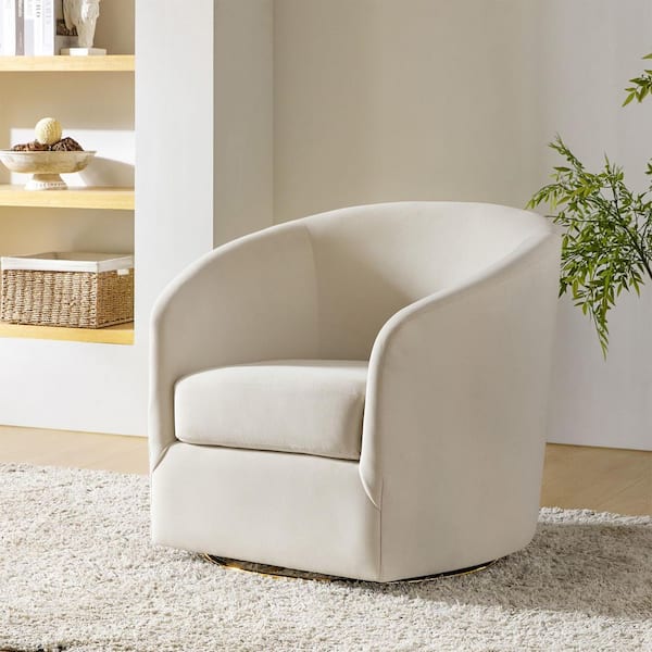 Estefan Tan Comfy Velvet Swivel Barrel Chair with Metal Base