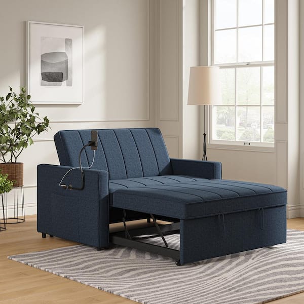 Fergus 53 in. Square Arm Polyester Square Sleeper Sofa in. Navy