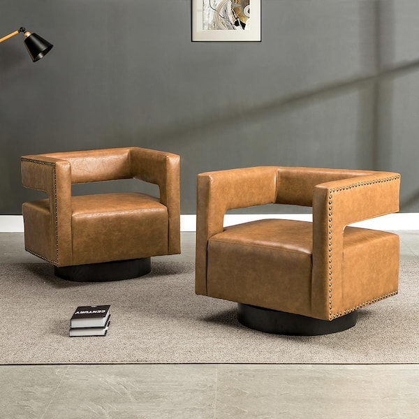 Ferrero Camel Contemporary and Classic Swivel Barrel Chair with Metal Base (Set of 2)