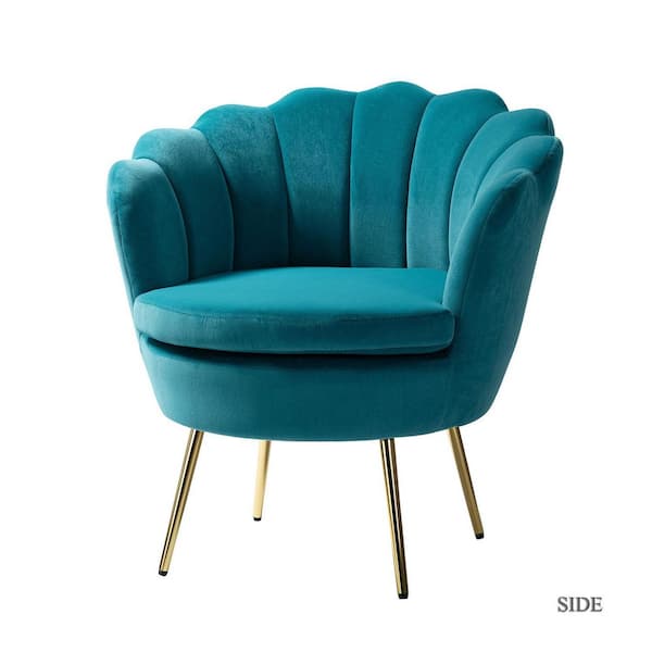 Fidelia Golden Legs Blue Accent Barrel Arm Chair with Tufted Back
