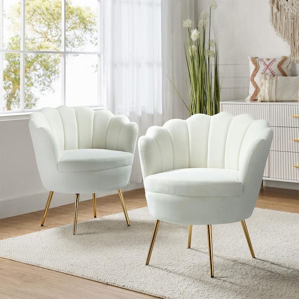 Fidelia Golden Legs Ivory Tufted Barrel Chair with Scalloped Seashell Edges (Set of 2)