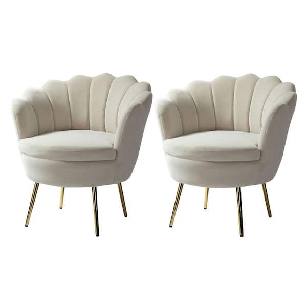 Fidelia Golden Legs Tan Tufted Barrel Chair with Scalloped Seashell Edges (Set of 2)