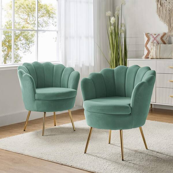 Fidelia Sage Tufted Barrel Chair with Scalloped Seashell Edges (Set of 2)