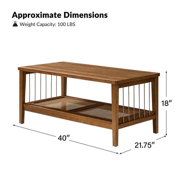 Garabina 40 in. Walnut Wood Rectangular Coffee Table with Rattan Woven Ropes
