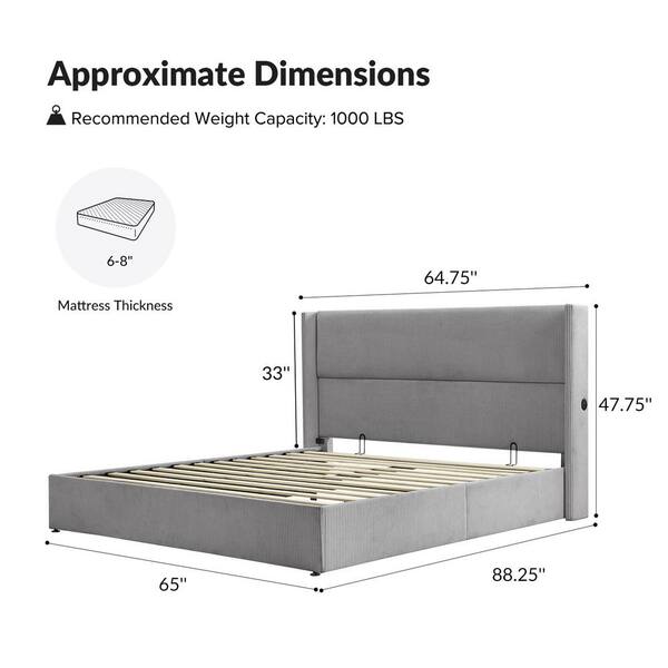 Genoveva Light Gray Wood Frame Queen Platform Bed with USB Charging Ports and Storage